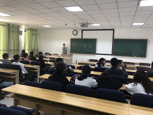 会议伊始,班长岳媛说明了本次会议的主要内容,并提醒同学们认真对待。之后,学习委员李穗生、王佳欣一起对上半个学期的成绩进行了分析,指出了本次考试总体较上学期有一定的进步但仍然有可观的进步空间。紧接着公布了期中考各科各分数段的人数和平均成绩的统计结果,通过比较为同学们进行详细的分析。而同学们也通过平均成绩来找到自己的优势学科和薄弱学科,从而有目的地进行学习,取得更大的进步。