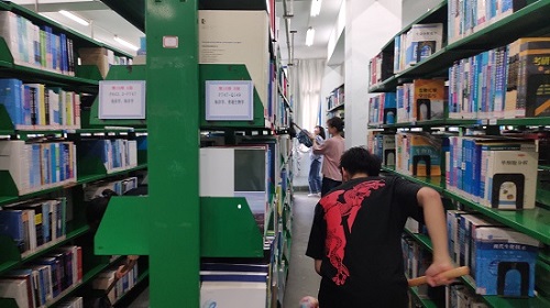 在清扫的过程中,同学们一丝不苟,当发现有书籍被放在了错误的位置时,同学们也会在询问管理员老师后细心地将其摆放在正确的区域。在有条不紊的清理中,不到一个小时书架和地板就焕然一新,这无疑是同学们尽职尽责、齐心协力完成任务的成果。