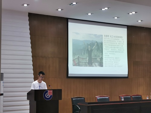 老师们的发言让同学们感受到化工院的理工融合特色和先进学院文化,而学生代表的发言则让化工院的生活变得更加真实可感。2016级张显明同学分享了自己在化工院的收获与成长,他以一名老生的经验告诉新生们,军训之后迎来的将是更大的挑战,快节奏的学习和各种各样的活动将纷至沓来,而新生们最重要的是寻找自己的平衡点。以“凡是过去,皆为序曲”、“不要去想,勇敢去做”、“可能无限,未来由你”三个切入点给予学弟学妹们启发。