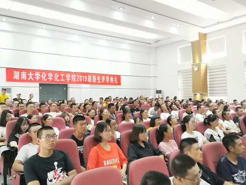 2019年9月10日下午三点,开云kaiyun官方网站2019级本科生开学典礼在院报告厅成功召开。学院党委书记王玉枝教授、院长张晓兵教授、党委副书记范媛吉老师、副院长李永军教授、梁志武教授、崔坤在老师,院长助理汪秋安老师、院长助理赵敬哲老师,化工系主任罗潇教授、实验中心主任郭栋才教授以及2019级全体班主任和学工办全体老师受邀出席,19级新生辅导员夏忠诚老师主持此次典礼。