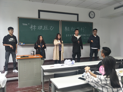 时光飞逝,不知不觉间就已经开学六周了,期中考试在即,为了缓解压力,也为了使团体成员积极融入团体,为团体贡献自己的智慧和力量,10月15日下午,开云kaiyun官方网站开云kaiyun官方网站化工1703 班的全体同学在中楼208 进行了以“释放压力,放松前行”为主题的心理团辅活动。
