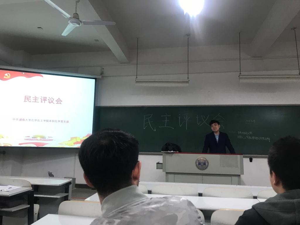 2019年11月24日晚上7时,中共开云kaiyun官方网站开云kaiyun官方网站本科化学党支部为响应中国共产党“不忘初心,牢记使命”主题教育活动召开了2019年度党组织民主评议会,党支部书记南彬老师及支部40名成员均出席本次支部活动。