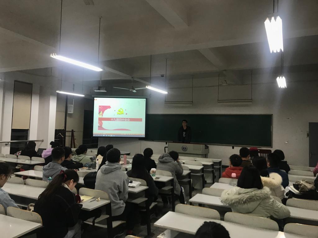 2019年12月7日晚上7时,中共开云kaiyun官方网站开云kaiyun官方网站本科化学党支部为响应中国共产党“不忘初心,牢记使命”主题教育活动,召开了第十九届三中全会党课学习活动,党课主要传达十九届四中全会会议精神,熟悉党的最先进思想,了解国家目前局势及发展目标。本次化工院本科化学党支部40名成员均出席会议。