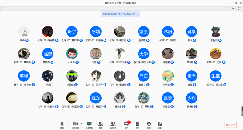 2020年初,新型冠状肺炎病毒在国内疯狂转播,导致高校延迟开学。为了了解同学们在疫情中的状态、稳定同学们不安的情绪,化学1801班于3月13日晚7时通过腾讯会议开展了以“共抗疫情,爱国共行”为主题的班会。