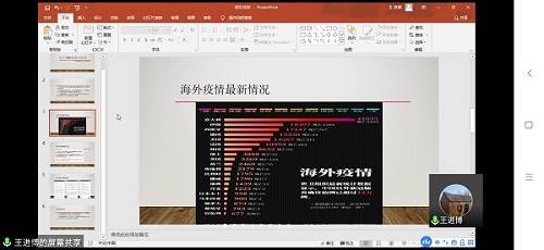 首先班长瞿天同学带领同学们一起学习了习近平总书记关于疫情防控工作的重要指示,进一步了解了国家为打响疫情防控的人民战争,对各级党委和政府的要求。接着,团支书王进博同学介绍了海外疫情最新情况,倡导“人类命运共同体”意识。值得一提的是,本次团日活动还有班主任金波老师的参与,老师分享了自己近日从海外学习归国途中的经历,让同学们也感受到了祖国的强大。