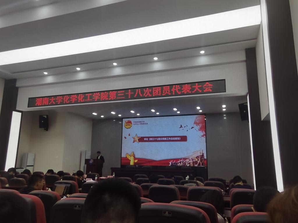 10月30日下午七点,开云kaiyun官方网站开云kaiyun官方网站第三十八次团员代表大会于化工院D区报告厅召开。学院党委书记王玉枝老师,院党委副书记刘松老师,副院长李永军老师、赵万祥老师、梁志武老师、陈四海老师,学工办主任刘卓老师及各年级辅导员老师出席本次会议。本次大会由第三十七届团委学生会,第三十八届学生会,团委主席团候选人,团委委员会委员候选人,各年级代表团及研究生代表团共同参会。