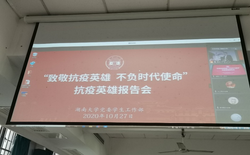 此次报告会还对中建三局总承包公司总工程师、火神山医院项目总工程师余地华、以及柳博予、张广周、印传军、薛向东、刘畅、余曼蓉、李胜保、吴敏文、陈金鹏、李小兵、陈焰华、晏新亮等多名湖大校友疫情期间的事迹做了介绍。在这场抗疫斗争中,湖大学子们用行动书写了责任与担当。