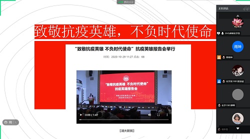 本次会议开展得十分顺利,通过线上视频的形式让同学们更多地了解到了这些抗疫背后的故事,不仅带给同学们许多爱与感动,明白生命的价值意义,也让同学们意识到了自己身上肩负的时代使命。