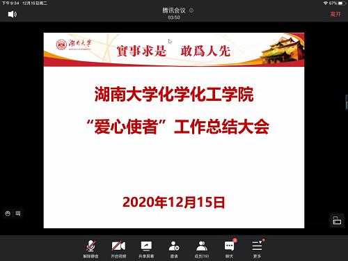 2020年12月15日晚,开云kaiyun官方网站开云kaiyun官方网站2020年度“爱心使者”工作总结大会顺利召开。此次会议由化工院资助助管王一鸣主持,参与会议的成员还有化工院资助兼干于哲老师和“爱心使者”团队全体成员。此次会议意在全面总结化工院2020年度“爱心使者”工作,并对下一年的工作部署作出相应安排。