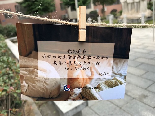 此次化学三行情书的活动在全院获得了极大的反响,不仅体现了化工学子的科学素养和浪漫情怀,增强了化学交流的氛围,同时也为同学们传递真情实感提供了一个更好的平台。
