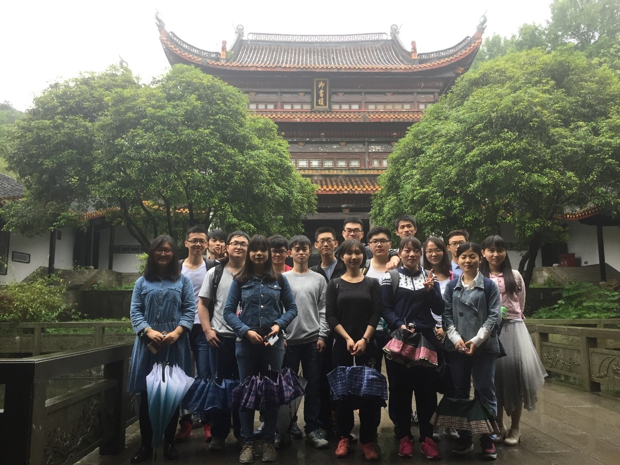 首先化工1403班的同学在岳麓讲习团马凤婷同学的带领下来到岳麓书院御书楼,公元976年,书院初建,书楼即存,此可谓图书馆的馆祖。1015年,宋真宗赐书,书楼更名为御书楼,藏书之名实至名归。随后大家又在马同学带领下了解了岳麓书院其他建筑。
