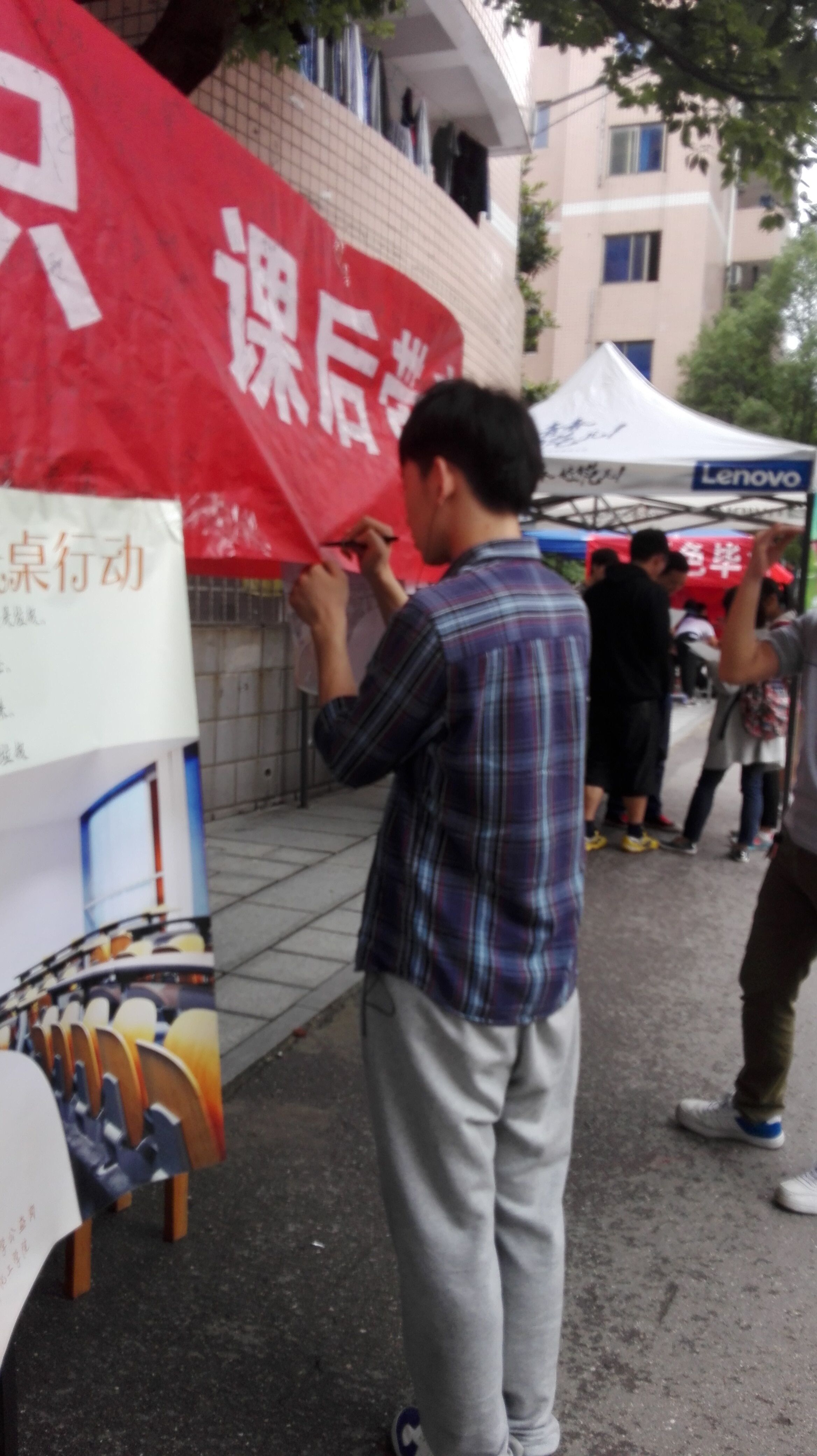5月29日,化工院公益岗带领志愿者们到天马学生公寓篮球场对整个园区内学生展开问卷调查并倡导更多的同学参与到课后光桌的活动中来。当对园区内同学做问卷调查时发现很多同学都很乐意参与到这样一个公益活动来,大部分同学面对其他同学在课上扔垃圾的行为一般不会制止,但是愿意把自己上课后产生的垃圾收到指定处。就这种常见现象,负责解说“课后光桌”的同学们则耐心引导同学们在今后要继续收走自己上课后产生的垃圾,慢慢用自己的切身行动去感染身边的每一位同学。当然也有少部分同学之前不太了解“课后光桌”的活动,解说的同学就为这些同学现场解释了什么是光桌以及光桌的意义所在,以期同学们在今后也参与到其中来。每一位同学还在填完问卷调查后在现场签下了自己的名字,希望自己也能成为一个公益倡导者。