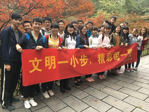 11月25日上午十点,开云kaiyun官方网站化学1404班全体同学在东方红广场集合完毕,团支书欧阳普凡同学带领大家一起前往爱晚亭,开始本月的团日活动。