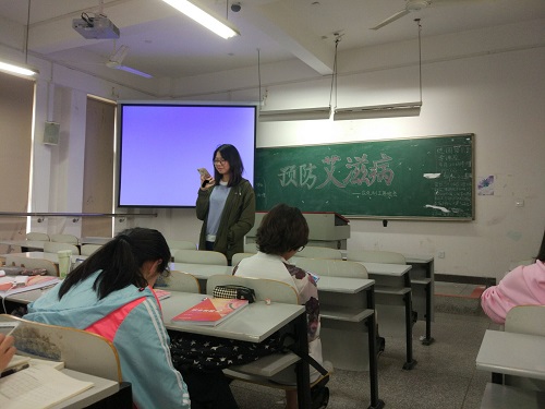 接着姚兰又为我们简要概述了艾滋病的三种传播方式,即血液,母婴和性传播,并为我们介绍了预防的方法,同学们都积极回应配合,班会在简单欢快的氛围中悄悄拉下帷幕。