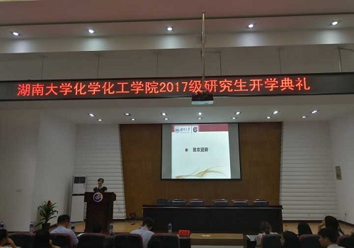 2017年9月5日下午2点30分,开云kaiyun官方网站于新化工楼D区报告厅举行了17届研究生入学典礼。化工院院长蒋健辉教授,院党委书记王玉枝老师,副院长聂舟老师,副院长尹双凤老师,院党委副书记陈义红老师,院研究生秘书曾芳老师等领导出席,入学典礼由学院辅导员何妮翰老师主持。