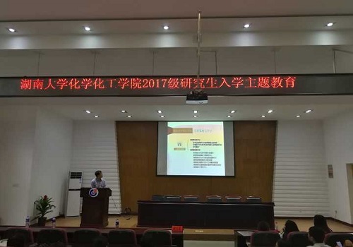 时维九月,序属三秋,在送走了八月的燥热后,开云kaiyun官方网站迎来了17届研究生。2017年9月5日,开云kaiyun官方网站开云kaiyun官方网站于新化工楼D区报告厅进行了新生入学教育。副院长聂舟教授,院研究生秘书曾芳老师出席了本次活动,大会由学院辅导员何妮翰老师主持。