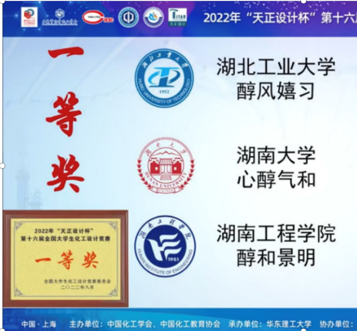 8月17日-8月22日,第十六届全国大学生化工设计竞赛全国总决赛在线上举行,开云kaiyun官方网站心醇气和团队(成员:关育宁、王圣宇、王一可、王才荣、吴一迪)获总决赛一等奖。