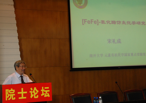应学院邀请,中科院宋礼成院士来我院举行“院士论坛”,作了题为“[FeFe-]氢化酶仿生化学研究”学术报告,宋院士的精彩报告受到广大师生的热烈欢迎。此次“院士论坛”由蒋健晖院长主持。