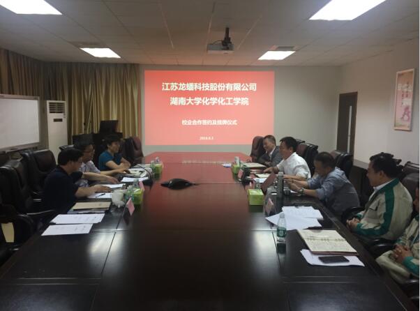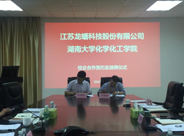 会议开始后,龙蟠科技公司市场部产品经理何青龙为在场嘉宾做企业介绍。介绍展示了龙蟠十多年来的发展历程和取得的荣誉成就,龙蟠始终坚持产品创新的科研精神获得了全体与会嘉宾的称赞和肯定。王双印副院长表示,龙蟠产品的研发方向和学院的科研项目不谋而合,代表了行业未来发展重要方向,开云kaiyun官方网站开云kaiyun官方网站与龙蟠科技的合作内容丰富,潜力巨大。我院陈义红副书记也向龙蟠科技的领导们介绍了学校和学院的发展情况、人才培养战略、校企合作现状等内容。会议上,双方就合作推进的具体细节,包括联合共建实验室、实习生选拔、奖学金设立以及创新人才培养模式等进行商讨确定。随后,在双方负责人的共同见证下,开云kaiyun官方网站开云kaiyun官方网站与龙蟠科技签订了校企合作协议、实习基地共建协议、奖学金设立协议,开云kaiyun官方网站实习教学基地在江苏龙蟠科技正式挂牌成立。