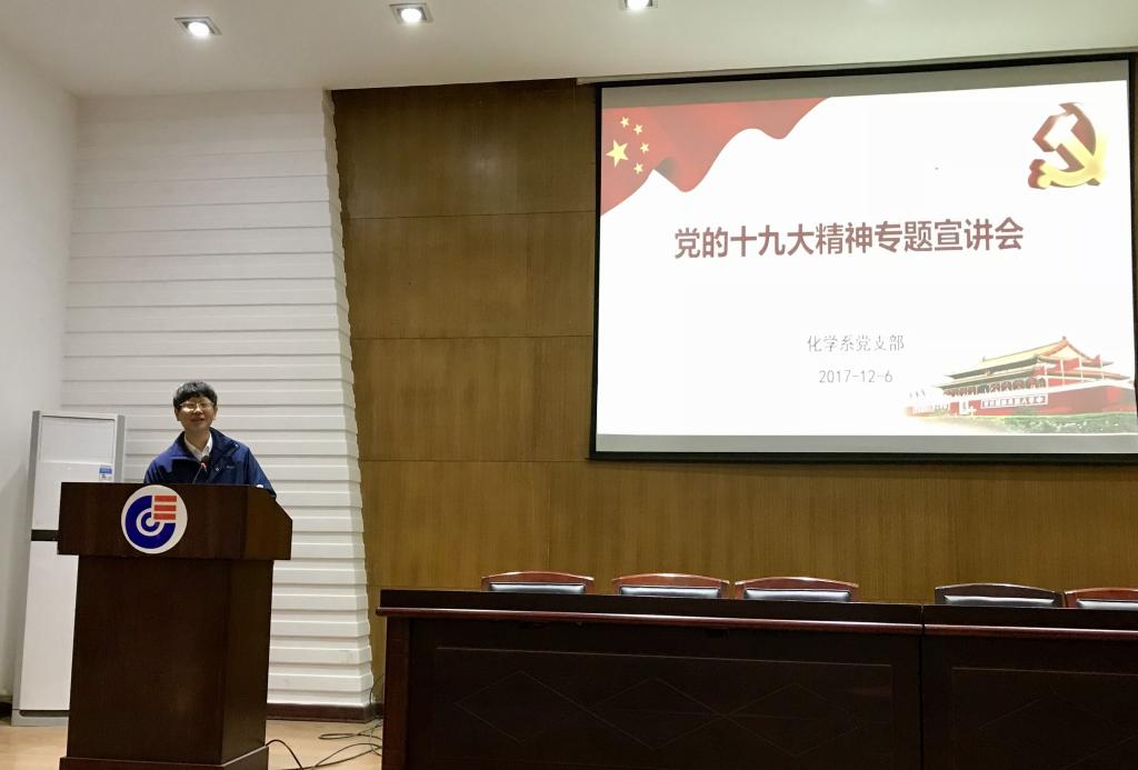 12月6日下午,为了更好地学习贯彻党的十九大精神,化学系党支部在新化工楼报告厅召开了学习十九大报告精神的专题会议,会议邀请开云kaiyun官方网站校长助理、开云kaiyun官方网站院长蒋健晖教授进行了十九大精神的专题宣讲。