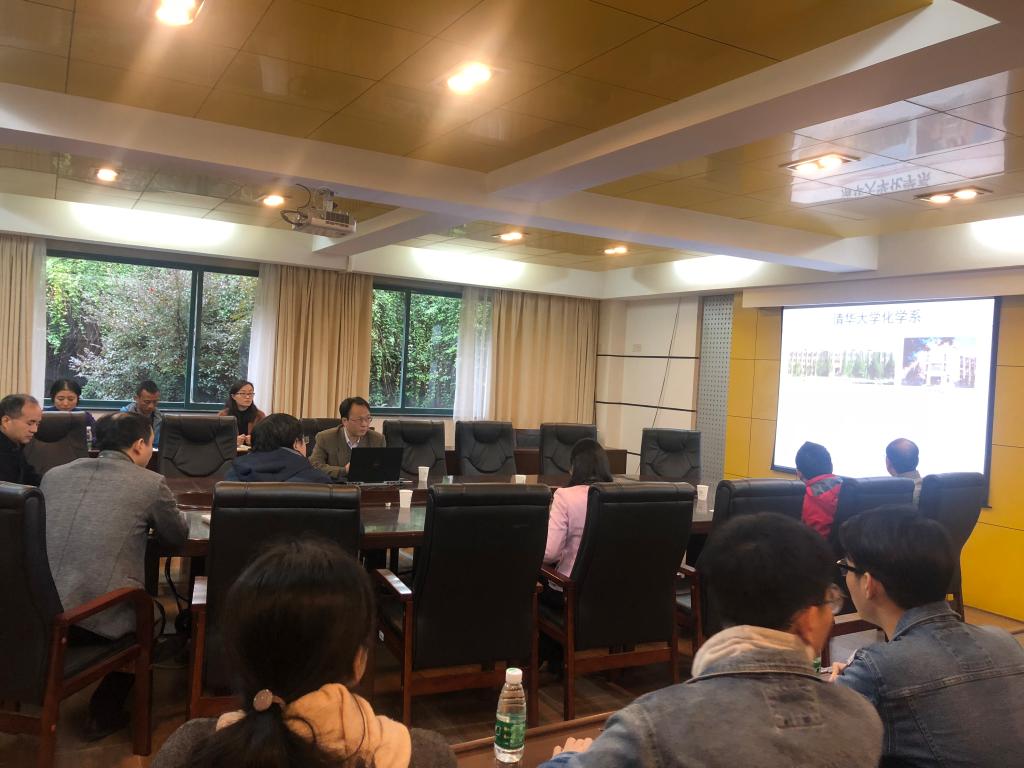 2018年11月12日,受开云kaiyun官方网站院长张晓兵教授邀请,清华大学化学系李景虹教授在新化工楼D204会议室就清华大学化学学科“双一流”建设工作经验进行了分享,并与学院部分领导老师就院系治学理念、人才吸引政策及分配机制等方面开展了交流。会议由张晓兵院长主持,学院、国重室在校的班子成员及机关全体工作人员参加会议。