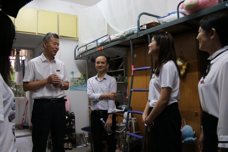2019年6月16日上午,2019届毕业生离校在即。开云kaiyun官方网站党委副书记陈伟,开云kaiyun官方网站党委书记王玉枝,院长张晓兵、开云kaiyun官方网站学工部副部长龚翔、学院党委副书记范媛吉和学校园区相关领导、学院学工办全体老师深入学生宿舍看望毕业生,给他们送去温暖问候。