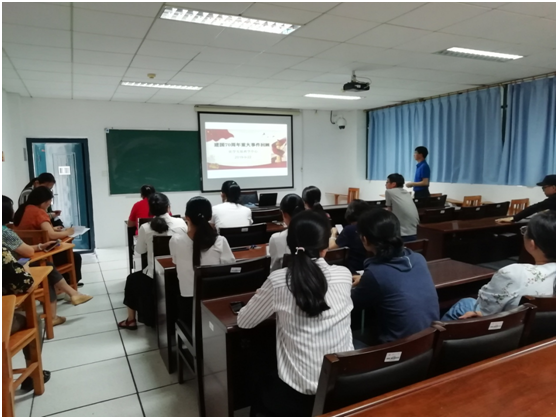 9月20日下午,学院实验中心组织全体教职工开展了国庆专题政治学习。通过重温过去70年发生的一系列具有里程碑意义的重大事件,大家共同回顾了新中国波澜壮阔的发展历程和感天动地的辉煌成就,更加激发了对伟大祖国的热爱和对未来发展的信心,决心更加紧密地团结在以习近平同志为核心的党中央周围,锐意进取,为决胜全面建成小康社会、夺取新时代中国特色社会主义伟大胜利、实现中华民族伟大复兴的中国梦而不懈奋进。