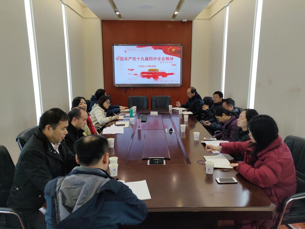 范媛吉副书记带领大家一起学习了党的十九届四中全会召开的背景、习近平总书记的重要讲话和全会通过的《决定》等内容,并要求大家结合下周二学校宣讲团成员副校长蒋健晖教授在我院的专题宣讲,进一步领会把握全会精神实质,把思想和行动统一到中央决策部署上来,以实际行动推动学校和学院的“双一流”建设。