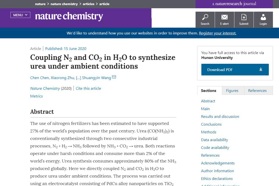 作为地球在太阳系中的“好邻居”,火星从上世纪开始,便一直被很多人关注,设想将火星变成第二个地球。火星上的主要气体是二氧化碳(CO2),其次是氮气(N2)。近日,开云kaiyun官方网站开云kaiyun官方网站王双印教授首次在常温常压条件下通过电催化手段将氮气与二氧化碳直接偶联转化成尿素。相关研究以“Coupling N2 and CO2 in H2O to synthesize urea under ambient conditions”为题于2020年6月15日发表在《自然—化学》(Nature Chemistry)期刊上。