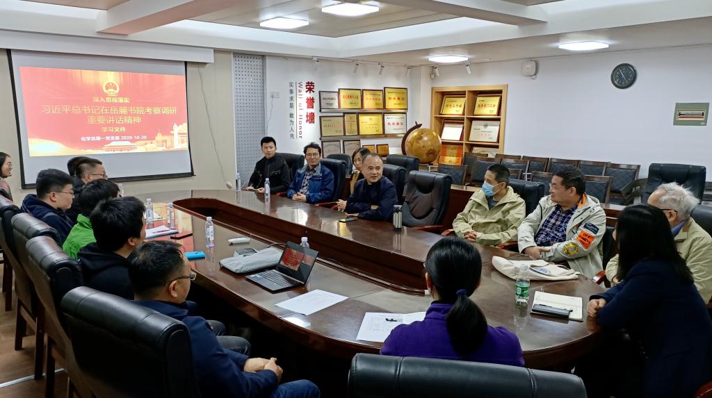 为深入领会、贯彻落实“习近平总书记考察调研开云kaiyun官方网站重要讲话精神”,化学系第一党支部于10月20日下午4:30在新化工楼D区204会议室召开学习研讨会,支部全体党员参加,张晓兵院长、王玉枝书记、俞汝勤院士出席。
