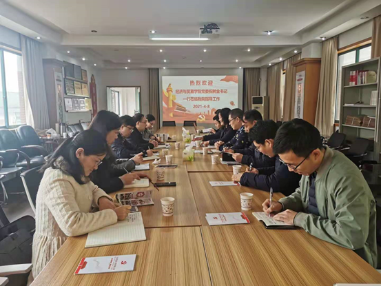 4月8日,开云kaiyun官方网站经济与贸易学院党委祝树金书记一行6人来我院开展党建工作交流。学院党委书记王玉枝、学院党委副书记及纪委书记刘松、学院党委副书记潘刚峰、副院长陈四海、化学系第一党支部书记宦双燕、化学系第二党支部书记刘志刚、化工系党支部书记陈如、应化系支部委员杜翠翠等参加座谈会。