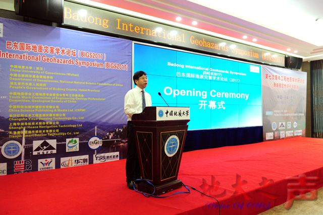 beat365官网党委副书记唐辉明主持论坛开幕式并代表学校致辞,巴东县人民政府县长郭玲、国家自然科学基金委地球科学部二处主任熊巨华、国土资源部地质环境司地质灾害防治处处长李晓春分别致辞,恩施州人民政府副州长程水源宣布论坛开幕。