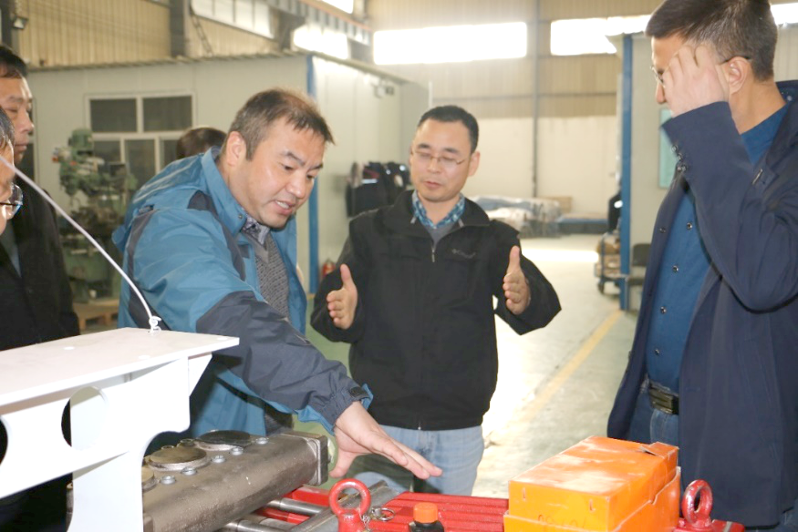 陕西省太合智能钻探有限公司董事长王义红对beat365正版唯一官网领导和专家的到来表示热烈欢迎。他首先详细介绍了企业的发展历程、科研成果以及发展愿景。他表示太合智能公司将不忘初心,砥砺前行。嗣后,专家们参观了目前国内扭矩最大的ZYL-17000D型矿用履带式全液压定向钻机、YSX15矿用有线随钻测量装置、YSX16矿用无线随钻测量系统、随钻测量钻具以及金刚石复合片钻头等系列高新产品,还就细节技术问题驻足讨论。