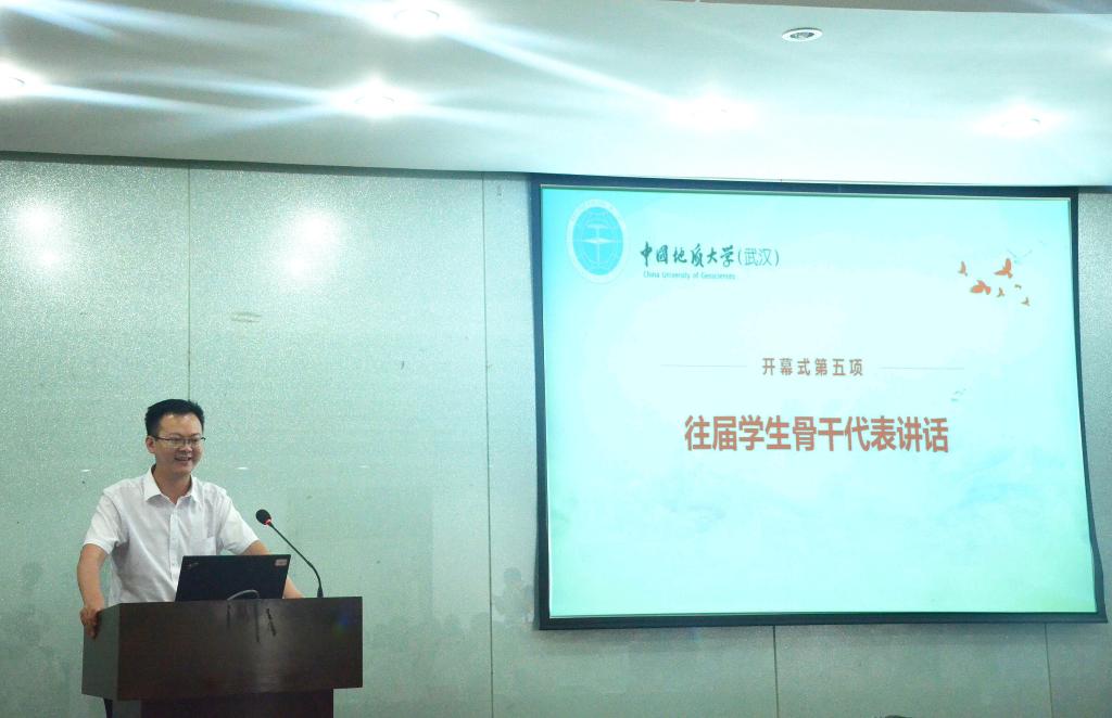 湖北省地质局第四地质大队总工、beat365正版唯一官网第十二届团委副书记张瑞发言。他说,在校期间,学校的良师益友、学生工作经历以及学校优秀的育人文化深深影响着自己。他表示,将把 “艰苦朴素、求真务实”的校训带到了工作中,用勤奋和努力诠释地大人的务实与担当。