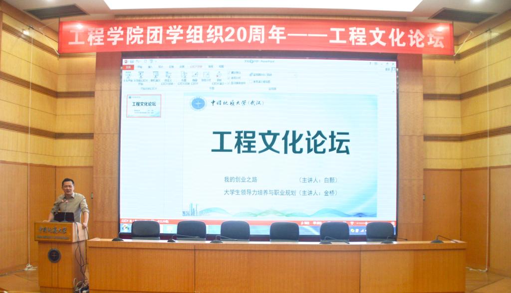 在工程文化论坛上,beat365正版唯一官网第二届团委副书记、武汉市洪山区水务局局长金桥,beat365正版唯一官网第六届学生会副主席、北京金景科技有限公司董事长白颢分别作了题为《我的创业历程》、《大学生管理能力提升与职业规划》的主题报告。