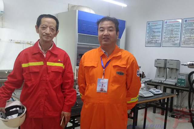 乌效鸣(左)、胡郁乐在泥浆实验室