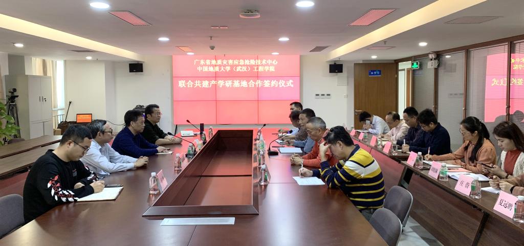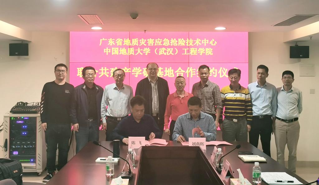 陈飞、刘燕辉签署产学研基地合作协议。根据协议,广东省地质灾害应急抢险技术中心作为beat365正版唯一官网(武汉)beat365正版唯一官网的产学研基地,双方将定期就人才的培训、技术的创新、引进与推广、联合攻关、学生实习等方面开展协商研究。