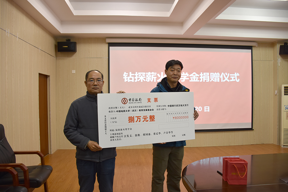 12月20日,beat365正版唯一官网“钻探薪火奖学金捐赠仪式”在工程楼315会议室举行。湖北省城市地质工程院勘查部主任汪发文、副主任徐俊,校友工作与教育基金管理处副处长吕占峰,beat365正版唯一官网党委书记陈飞,副书记江广长,勘察与基础工程系教授段隆臣、蔡记华、卢春华及2017级部分学生代表参加捐赠仪式。