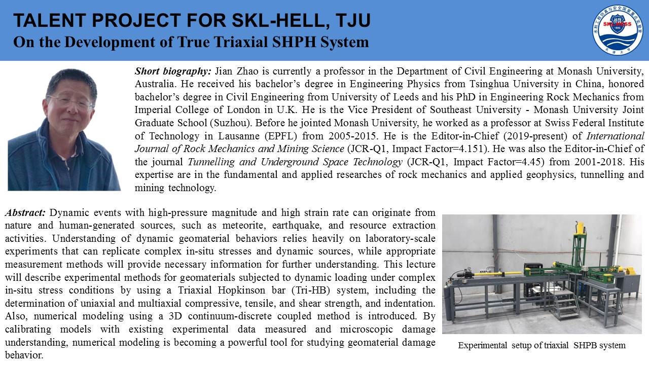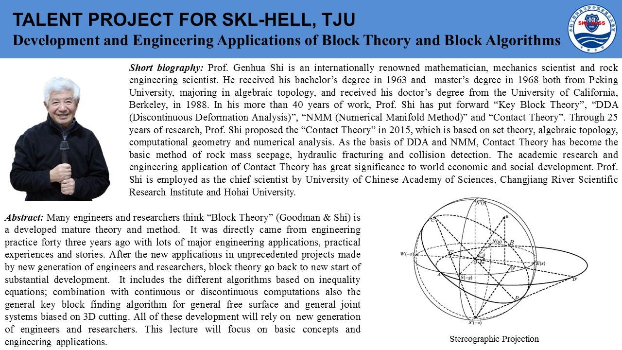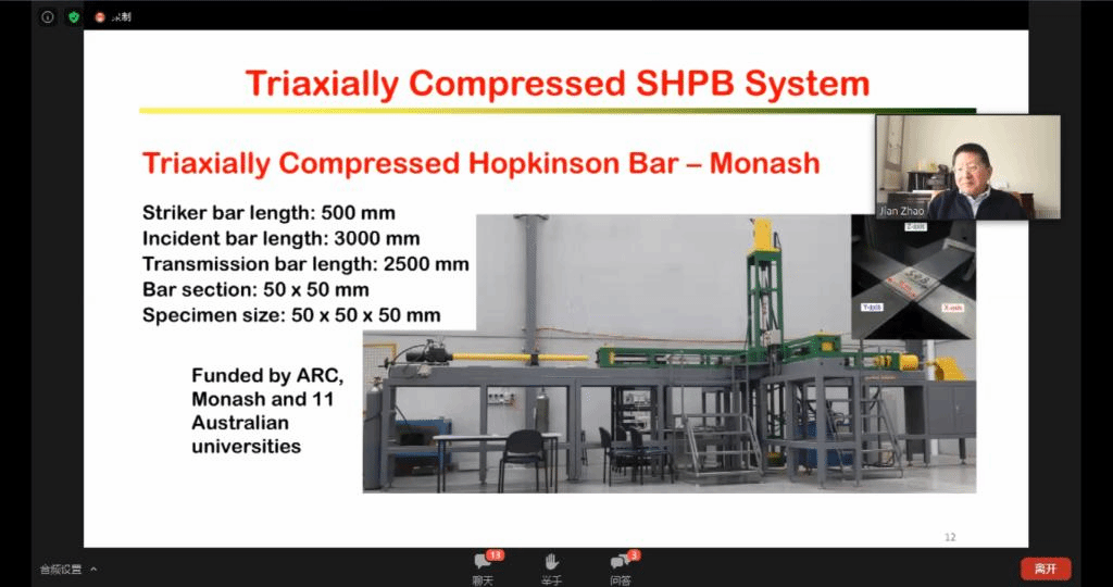 2020年7月18日上午,由国际岩石力学与岩石工程学会非连续变形分析专委会和岩石动力学专委会联合发起,beat365正版唯一官网(武汉)、天津大学和东南大学联合承办的第一期国际岩石力学云论坛成功举行。本次论坛邀请了关键块体和数值流形理论创建者石根华教授、澳大利亚莫纳什大学赵坚教授、澳大利亚悉尼大学沈鲁明教授分别作了题为《Development and engineering applications of block theory and block algorithms》、《On the development of true triaxial SHBP system》、《A coarse-grained approach for modelling solid-liquid-gas interactions at microscale》的精彩讲座,来自莫纳什大学、悉尼大学、新加坡南洋理工大学、日本京都大学、beat365正版唯一官网(武汉)、天津大学、东南大学、中山大学、大连理工大学、山东大学等全球各高校的1000余名专家学者参与了此次云论坛。