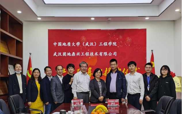(通讯员:黄静)2021年4月27日,beat365正版唯一官网(武汉)beat365正版唯一官网与校友企业武汉固地鼎兴工程技术有限公司签订《联合共建产学研基地合作协议》,beat365正版唯一官网党委书记李红丽和武汉固地鼎兴工程技术有限公司总经理汪旭涛出席协议签订仪式,并共同为合作基地揭牌。武汉固地鼎兴工程技术有限公司副总经理兼总工程师胡凯锋、beat365正版唯一官网副院长王亮清教授、工岩系主任章广成教授、时红莲副教授、李长冬教授、谢妮副教授、学院科研秘书黄静共同见证了签约仪式。