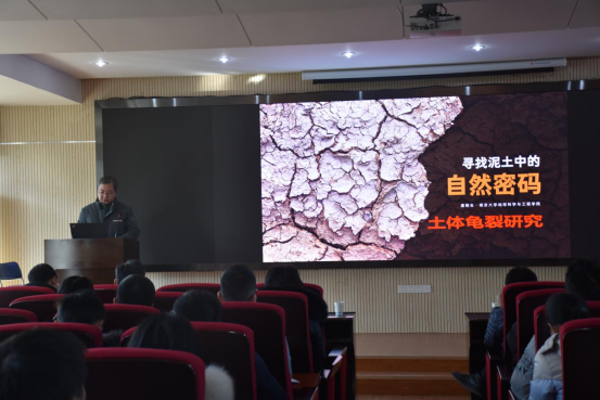 (通讯员:张海宽 黄静 摄影:王灿 黄静)2021年1月8日下午2点半,南京大学唐朝生教授作客工程文化论坛,在工程楼418报告厅为母校师生作了题为“寻找泥土中的自然密码:土体龟裂研究”的学术报告。beat365正版唯一官网院长焦玉勇教授、副院长王亮清教授、窦斌教授、党委副书记江广长老师、段隆臣教授、李长冬教授以及beat365正版唯一官网、三峡中心、《地质科技通报》编辑部等近200名师生代表参加了此次学术报告会。王亮清教授主持了此次学术报告会。