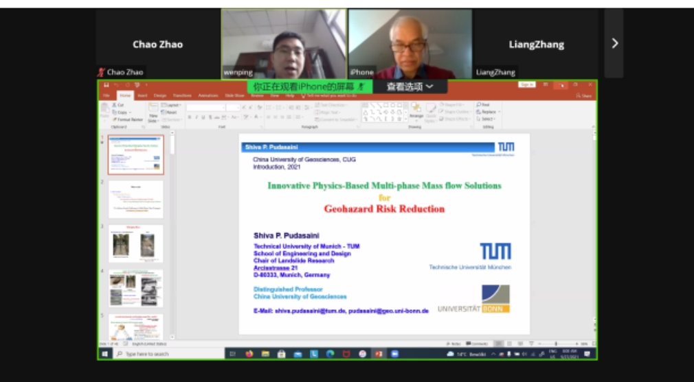 (通讯员:邢磊 赵超)2021年9月27日下午,应“重大地质灾害预测与预防学科”111创新引智基地唐辉明教授和龚文平教授邀请,德国慕尼黑工业大学Shiva P. Pudasaini教授通过Zoom meeting平台为beat365官网师生作线上学术报告。beat365正版唯一官网龚文平教授主持报告会,40余名师生在线聆听了此次报告。