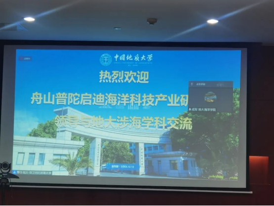 (通讯员 陈卫明)4月15日上午,beat365正版唯一官网、海洋学院,磐索地勘科技(广州)有限公司与启迪海洋科技产业研究院成功举行线上交流会。beat365正版唯一官网(武汉)beat365正版唯一官网党委书记李红丽、海洋学院党委书记成军、beat365正版唯一官网副院长窦斌、磐索公司总经理陈奇博士与启迪海洋科技产业研究院执行院长董焱等18人参加会议。会议由陈卫明副教授主持。