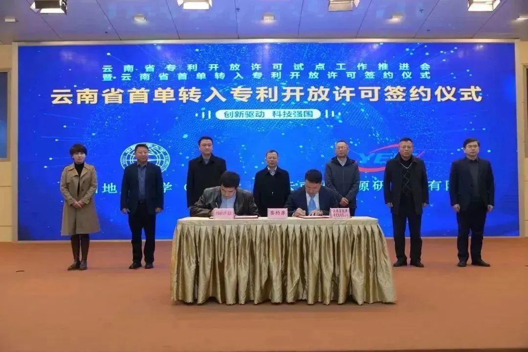 (通讯员 蔡记华 杨现禹 黄静)2月28日下午,在云南省市场监督管理局(知识产权局)、昆明市市场监督管理局(知识产权局)的指导下,昆明高新技术产业开发区管理委员会在昆明高新区西区火炬大厦隆重举办了“云南省开放许可试点工作推进会暨云南省首单转入专利开放许可签约仪式”活动。会上,云南省能源研究院有限公司与beat365正版唯一官网(武汉)就基于我院蔡记华教授、杨现禹副教授团队成果“纳米颗粒流体的页岩纳米孔隙封堵实验装置及方法”“基于多参数的离散元纳米颗粒封堵页岩孔隙数值模拟方法”“一种稳定页岩的水基钻井液”3项发明专利签署了专利开放许可协议,这是云南省签约的首单转入专利开放许可。