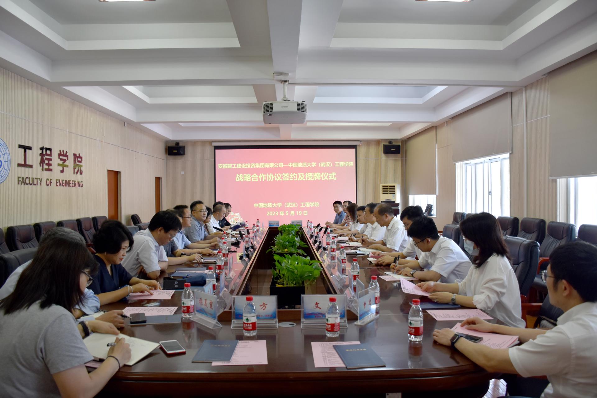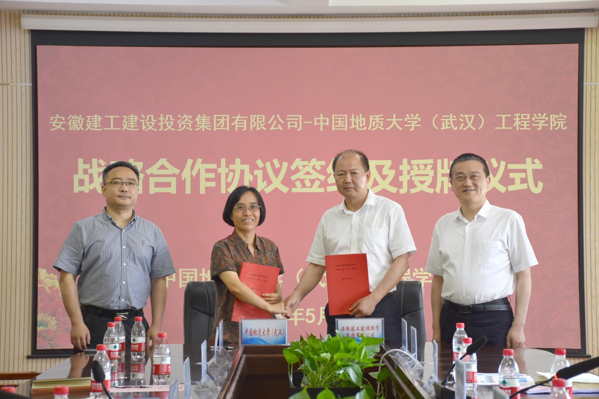 (通讯员 张美霞 王灿 冯焱 )5月19日,我院与安徽建工建设投资集团有限公司(以下简称:建设投资集团)签署战略合作协议。建设投资集团副书记干戈,党委委员、副总经理、总工程师陈莘,beat365官网党委常委、副校长王力哲,校友与社会合作处副处长、深圳研究院副院长王强,我院党委书记李红丽,党委副书记、院长焦玉勇,副院长章广成及双方相关人员参加合作座谈会和签约仪式。李红丽主持会议。