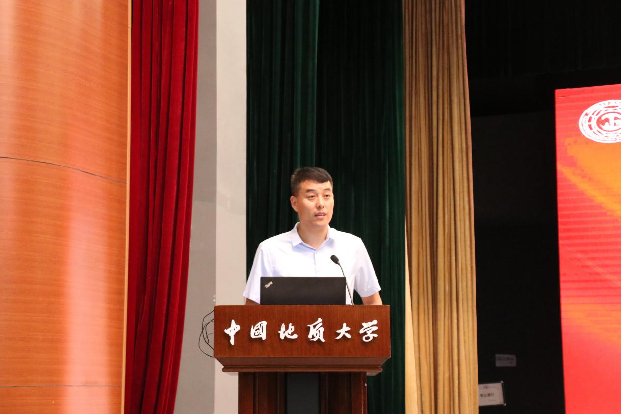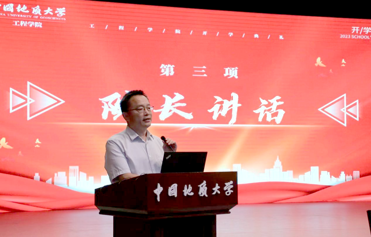 beat365正版唯一官网院长焦玉勇教授讲话。他以“祝贺”“欢迎”“希望”寄语新生,祝贺860位新生加入国家工程行业,欢迎同学们来到beat365正版唯一官网beat365正版唯一官网,为学院发展注入新鲜血液、增添奋进力量。他系统全面的向大家介绍了学院的历史沿革、系室设置、师资力量、学科建设、科学研究、国际交流等基本情况,勉励全体新生用习近平新时代中国特色社会主义思想凝心铸魂,用“艰苦朴素,求真务实”的校训精神和“明理尚实、拓新砺行”的院训精神领航前进,跟随学校学院的发展步伐,用好学校学院的发展平台,毅然投身于国家工程建设行业当中,迎难而上、奋勇前行,不负历史、不复时代,为把学院建设成为地质工程与人居安全领域特色鲜明、享誉国际的一流研究型学院不懈努力!