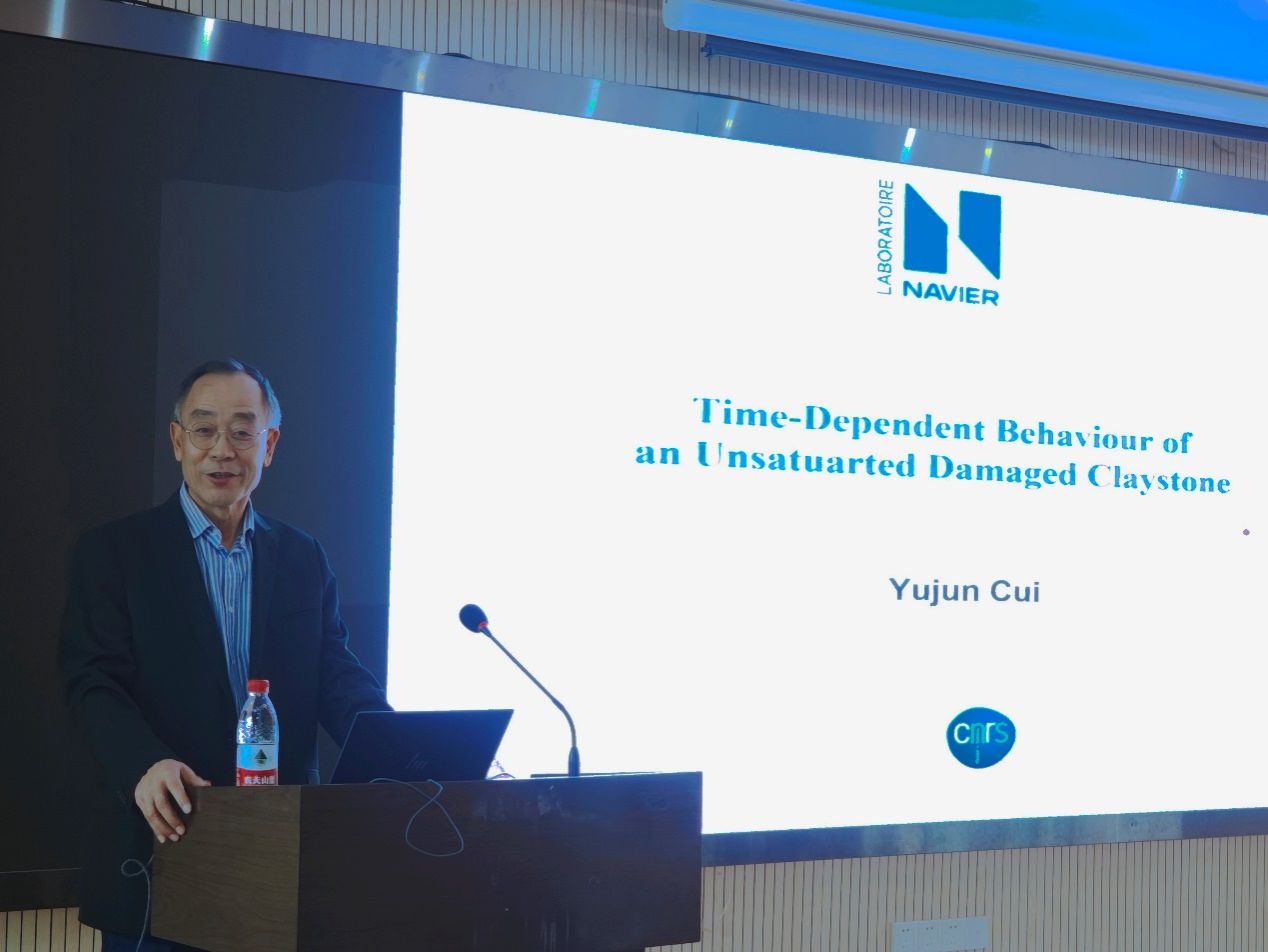 (通讯员 张峰 黄静)2023年10月31日上午,应beat365正版唯一官网唐辉明教授和张峰特任教授的邀请,法国国立路桥大学Navier实验室岩土中心(CERMES)主任崔玉军教授来校访问,并作了题为“Time-dependent behaviour of unsaturated damaged claystone”的学术报告。唐辉明教授主持了报告会,李长冬教授、周佳庆特任教授、张峰特任教授、崔德山副教授、任兴伟副教授等100余名师生在现场参加了此次报告会。