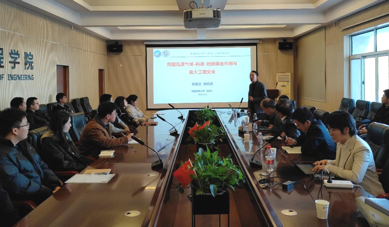 祁生文研究员以“青藏高原气候-构造-地貌耦合作用与重大工程安全”为主题展开学术报告,首先从区域动力环境、地壳圈层结构、气候变化规律等方面论述了青藏高原的独特性与重要性,并简要介绍了近年来青藏科考的主要成果。接着祁生文研究员以孕灾地质环境为切入点,介绍了构造-地貌-灾害耦合过程和他们建立的气候-构造耦合作用模型,阐述了青藏高原气候-构造-地貌与工程跨时间尺度耦合致灾机理。最后,祁生文研究员通过生动的工程案例讲述了团队在隧道深裂缝变形力学机制、水电边坡稳定性评价、重大工程选址等方面的工作。