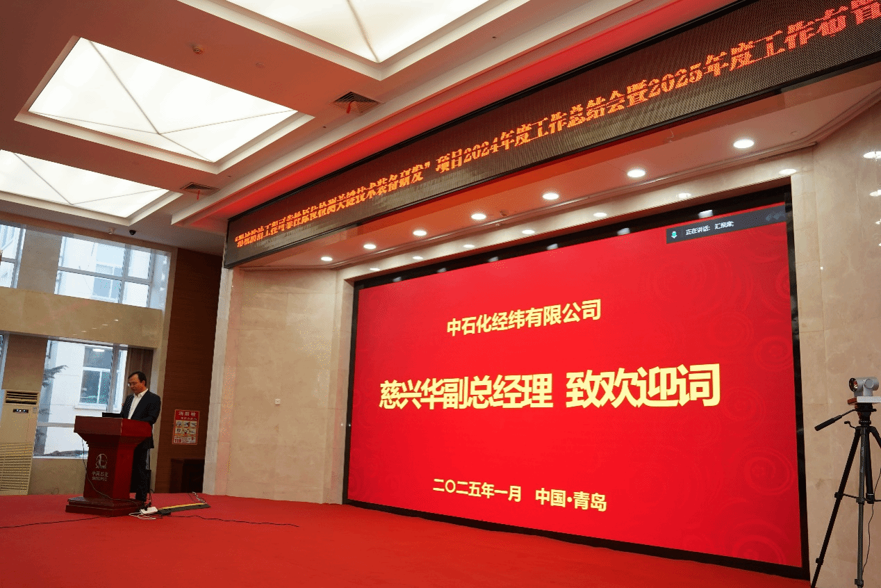 中石化经纬有限公司技术发展部经理饶海涛主持会议开幕式,介绍了与会院士、领导和专家。中石化经纬有限公司副总经理慈兴华代表项目参加单位致欢迎词,对莅临本次会议的院士、领导和专家表示热烈的欢迎和衷心的感谢。他希望专家学者们集思广益、各抒己见,为重点研发项目精准“把脉”,剖析问题、指明方向,并表示将严格落实项目参与单位责任,认真组织实施,推动落实各项工作,为高质量完成项目预定目标提供保障。
