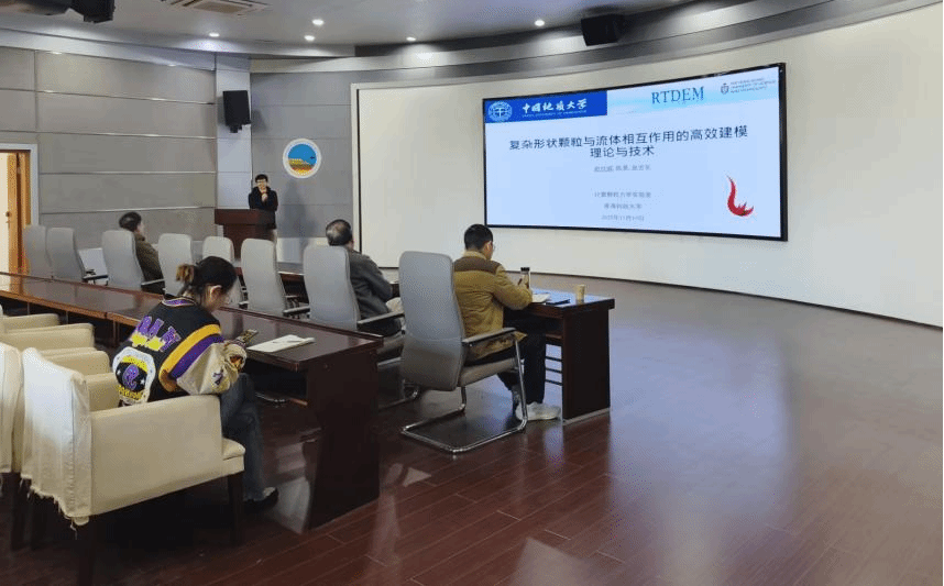 赵仕威助理教授学术报告主题为“复杂形状颗粒与流体相互作用的高效建模理论与技术”。报告提出,经典建模理论和技术是一个在计算效率和形状精度之间不断权衡取舍的体系,为理解非球颗粒材料的宏观力学行为奠定了坚实的基础。RTDEM通过一种新思路,将计算力学中最棘手的复杂几何接触检测问题,转化为计算机图形学中已完美解决的光线求交问题,成功打破了效率与精度之间的传统桎梏,为模拟真实世界中千奇百怪的颗粒材料提供了强大、通用且高效的数值工具,是颗粒物质力学模拟领域一个重要的里程碑式进展。他提出RTDEM与CFD的耦合将颗粒系统的模拟推向了兼顾复杂形状、复杂流体和复杂物理场的新高度,虽然在计算效率、模型精度和通用性方面仍面临挑战,但通过新的耦合算法、更强大的算力以及针对特定问题的创新模型,这一领域正逐步朝着实用化迈进,未来有望在更多科学与工程领域提供前所未有的洞察力。